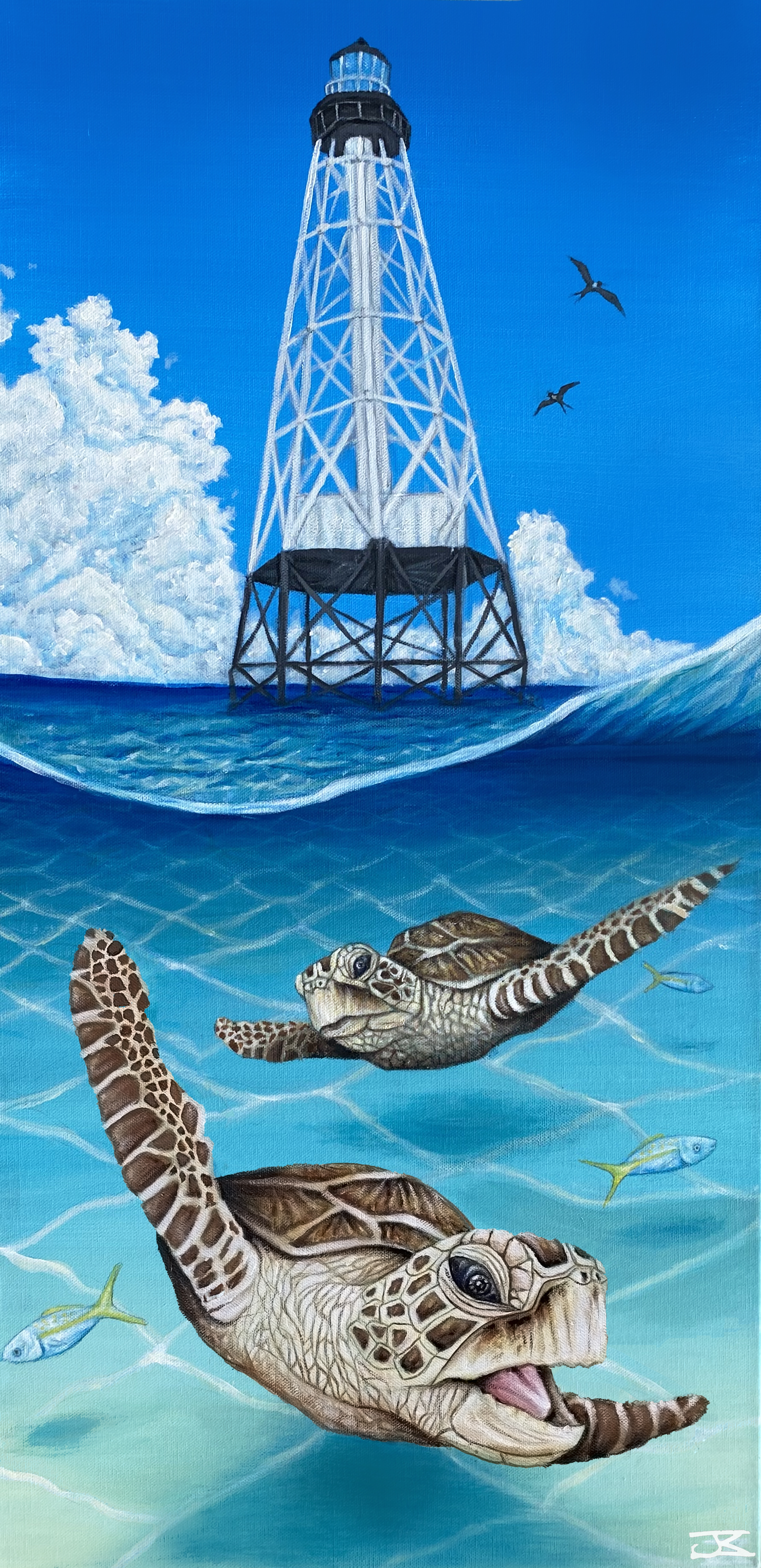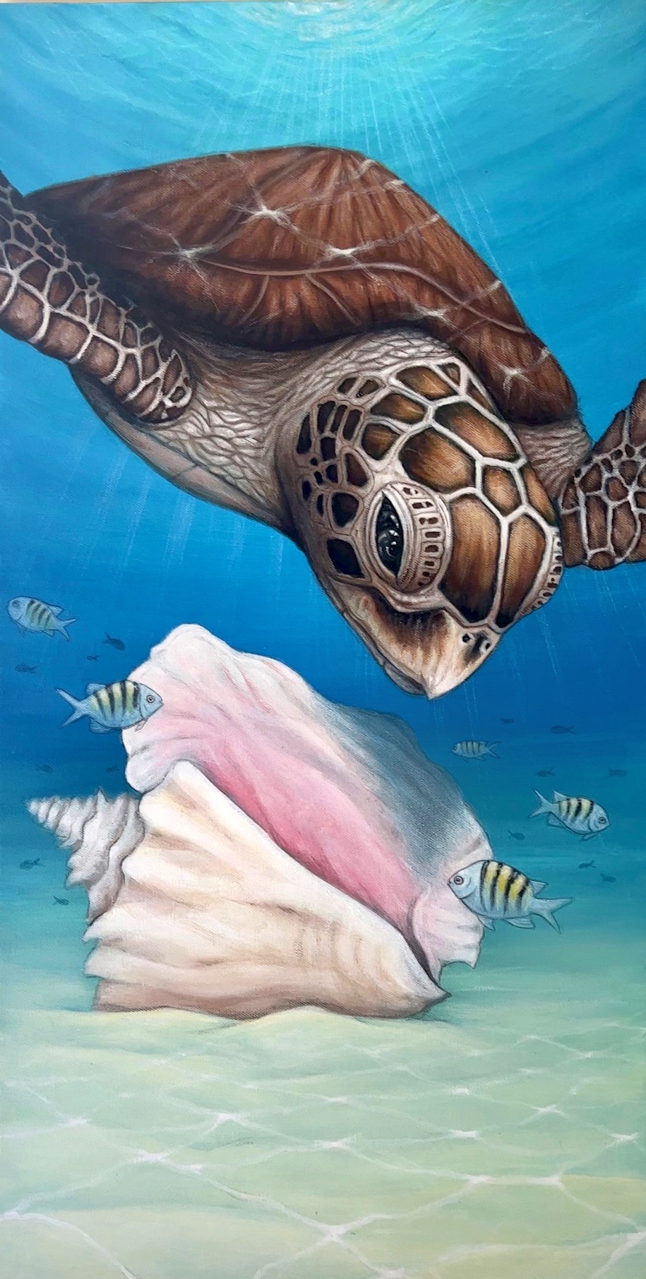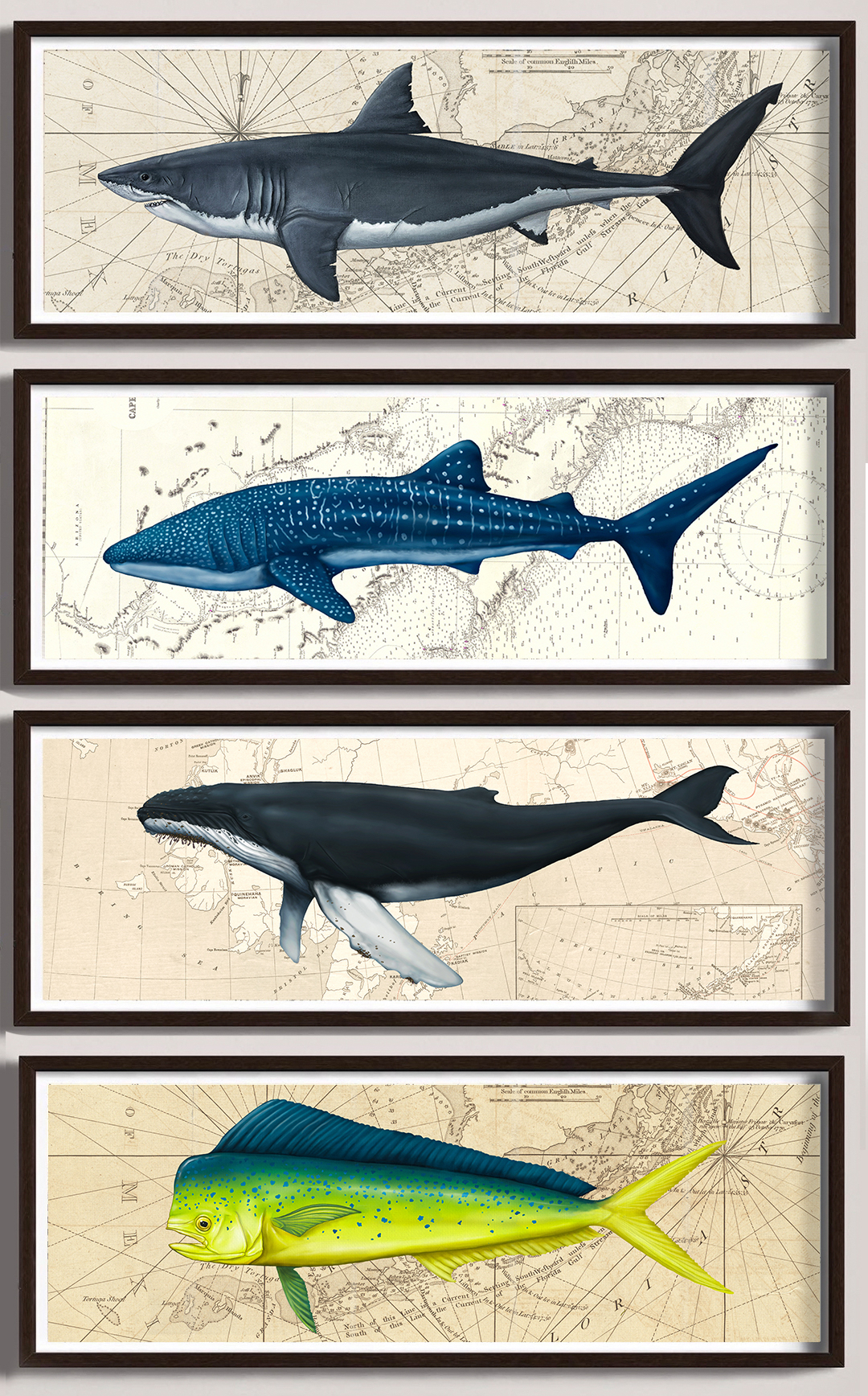 A selection of Jack Kelly’s original marine life paintings. Jack primarily works with acrylic on canvas and utilises bright colors and contrasts to make his paintings pop and produce a tropical vibe, reflecting the environment where he lives and works.